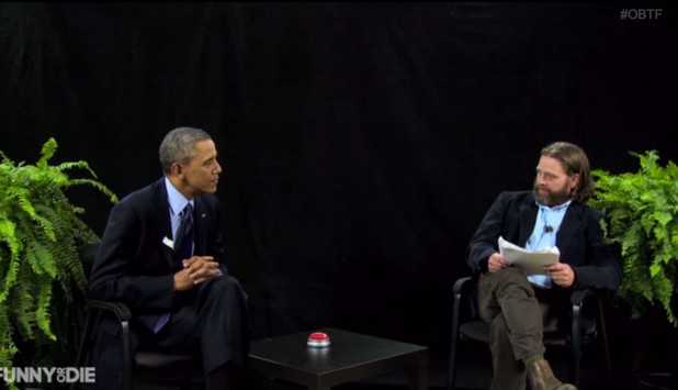 Αρχικά, ο Γαλυφιανάκης κάνει πως δεν ξέρει ποιον έχει απέναντί του, ενώ ο Ομπάμα του λέει πως εκπλήσσεται που η εκπομπή έχει τηλεθέαση. Και κάπως έτσι το... πινγκ πονγκ ξεκινάει!